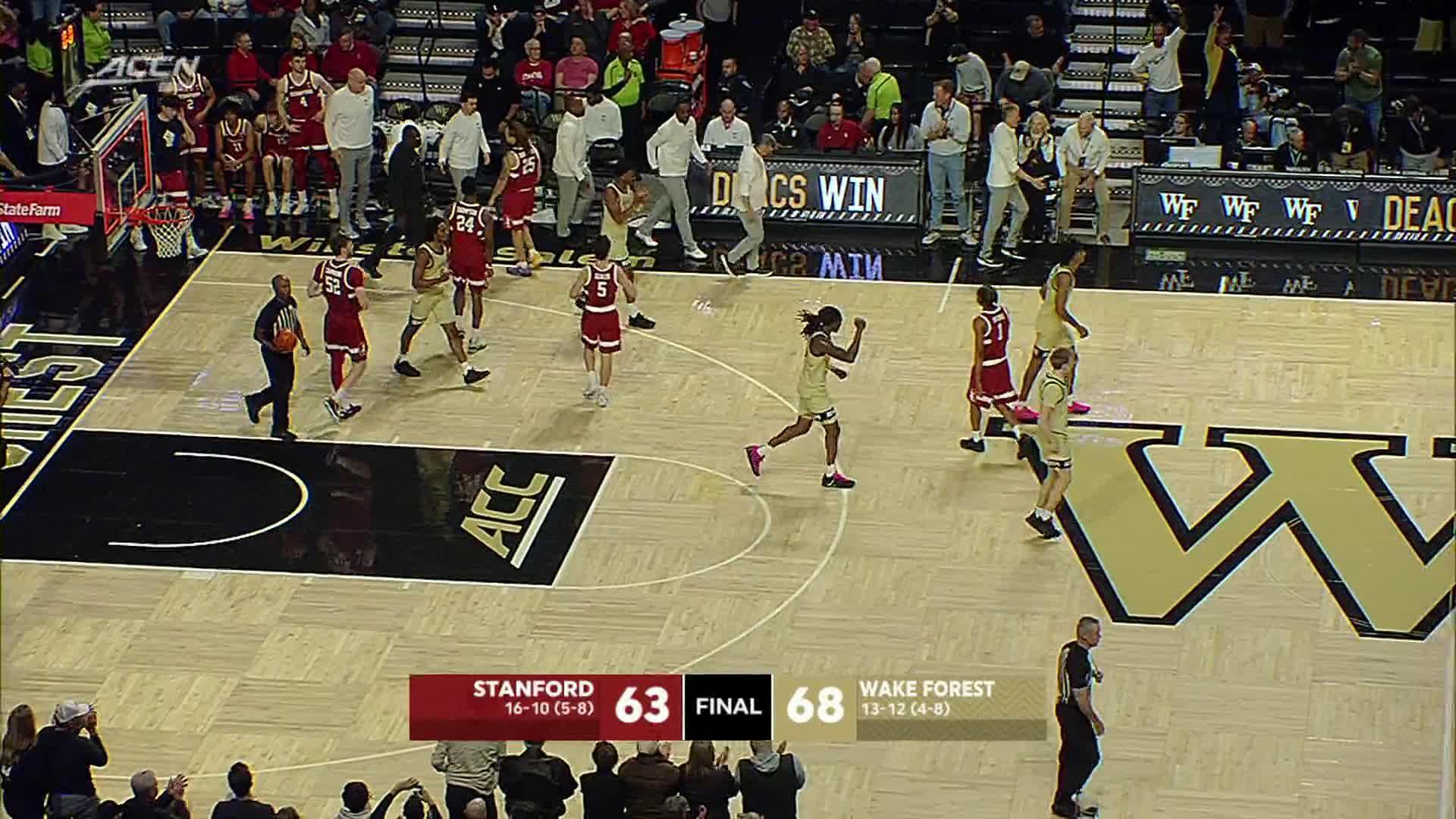 The Cardinal led 39-30 at halftime but were unable to extend their lead in the second half. Wake Forest finally tied it at 61 on a layup by Harris with 1:48 remaining. A jumper by Harris with 54 seconds left gave the Demon Deacons their first lead since it was 9-6.