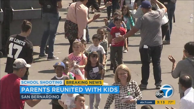 SAN BERNARDINO, Calif. -- Students and parents embraced in emotional reunions after a fatal shooting at an elementary school in San Bernardino on Monday.