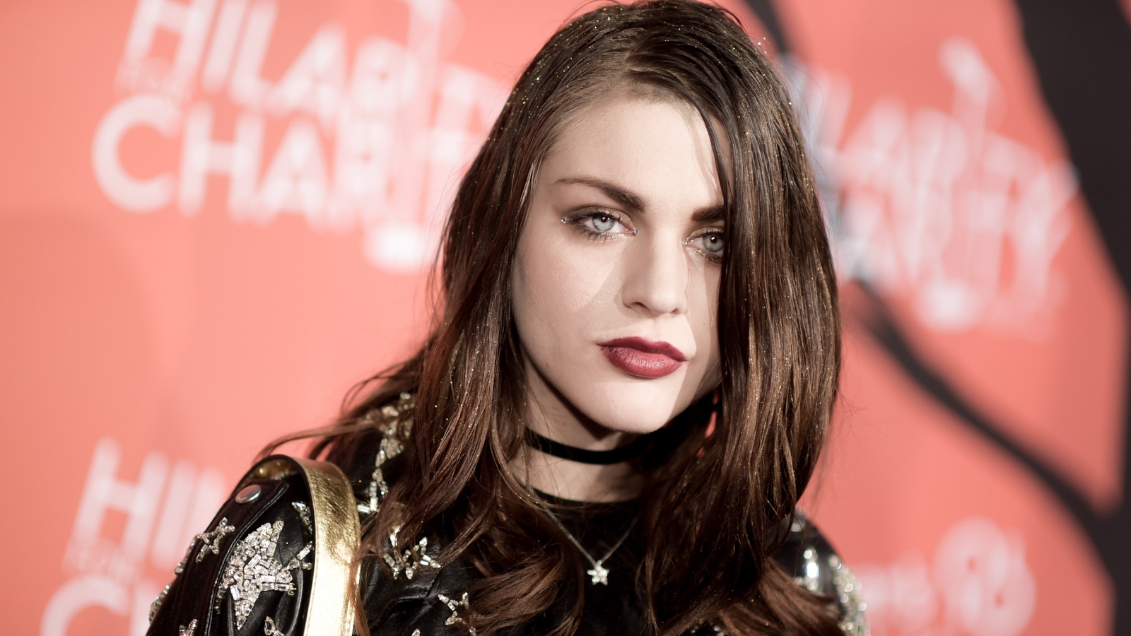 In the image, Frances Bean Cobain was wearing what appears to be a wedding dress.