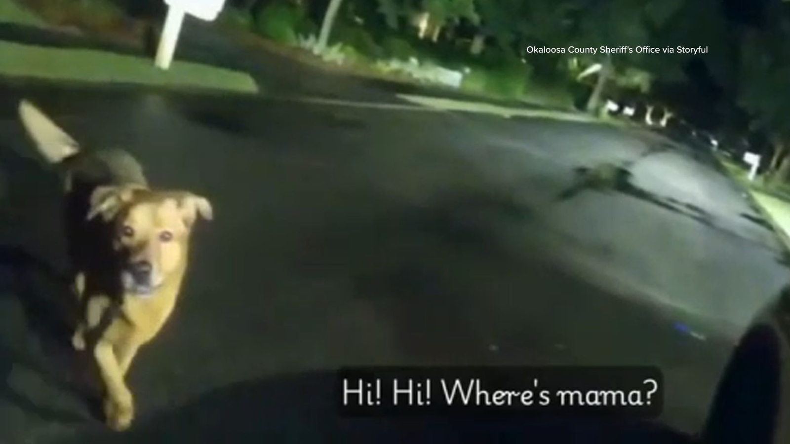 "Show me where your mama is," the deputy says to the dog.