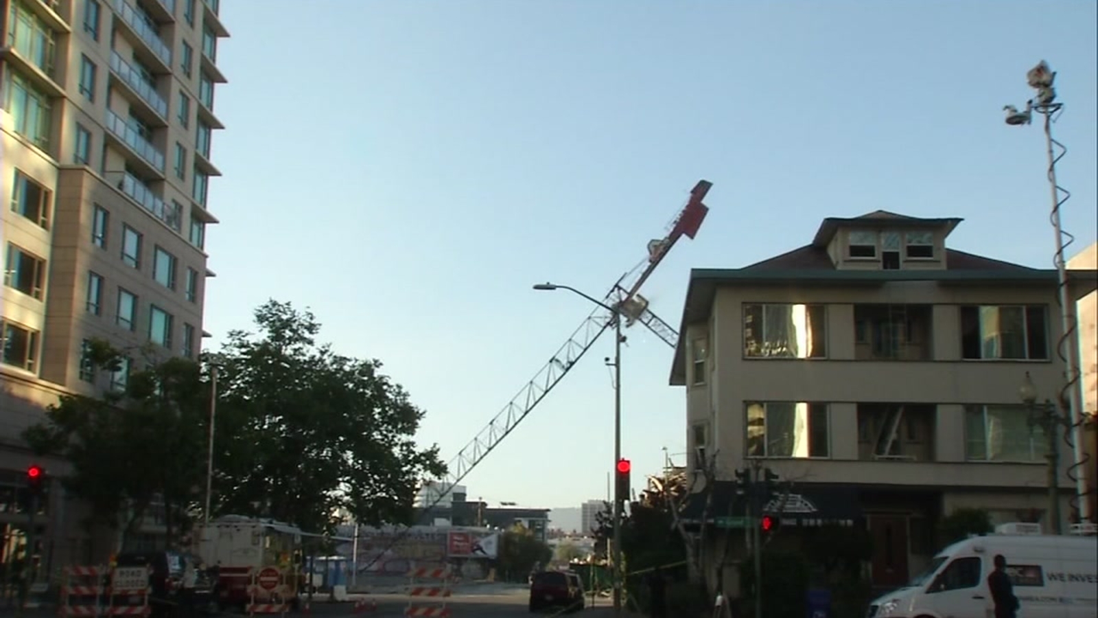 An unstable crane that had kept many of those residents away from their homes was toppled Saturday afternoon.