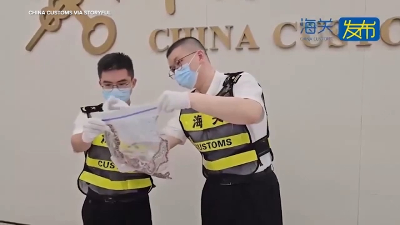 The customs agency did not say if the man was arrested, but it warned that "if the regulations are violated, the customs will pursue legal liability in accordance with the law."