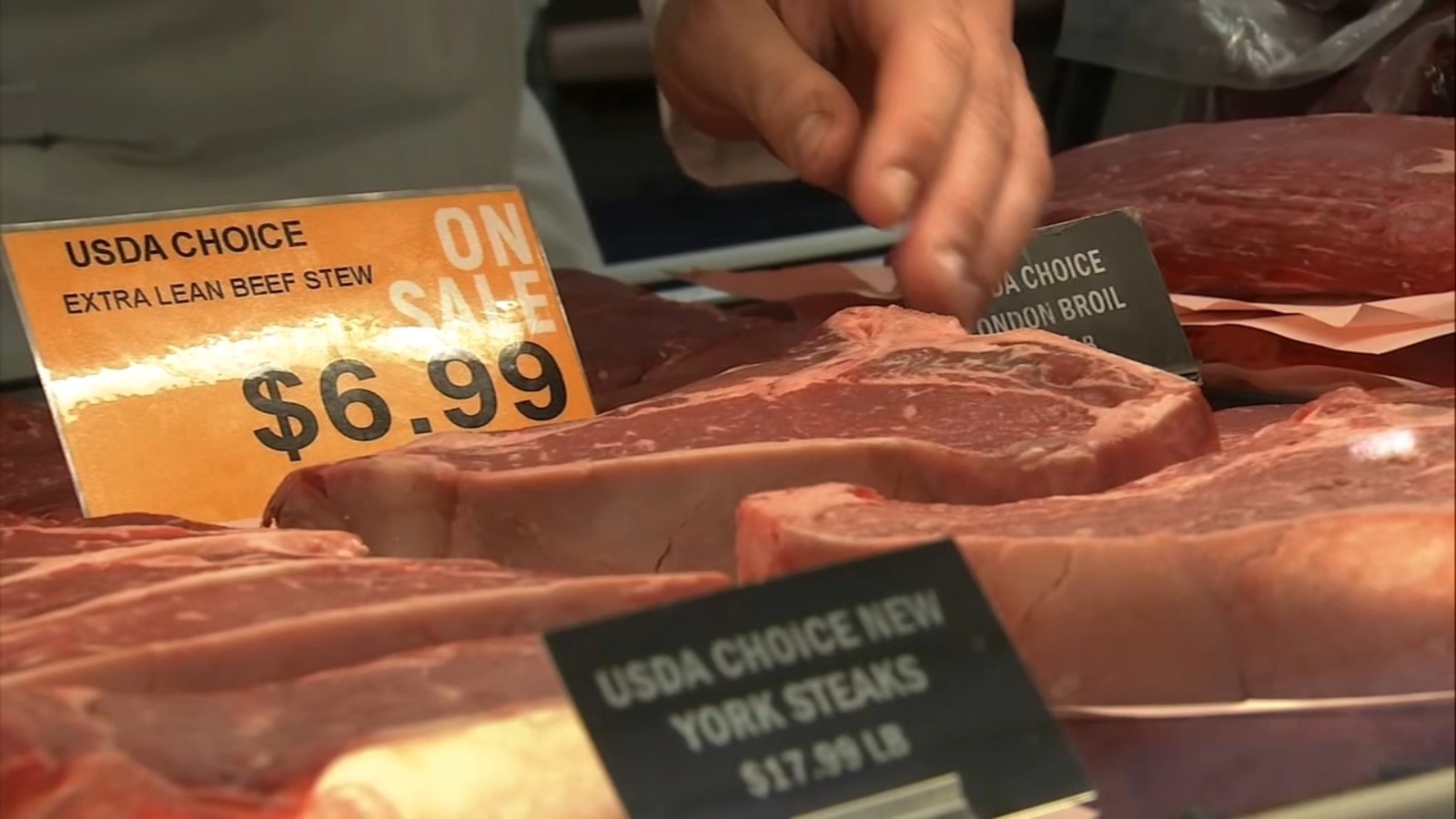 The meat manager at Piazza's in San Mateo, he has seen beef prices jump $3 to $4 per pound recently. Nationally, meat prices have gone up 12% in the past year.