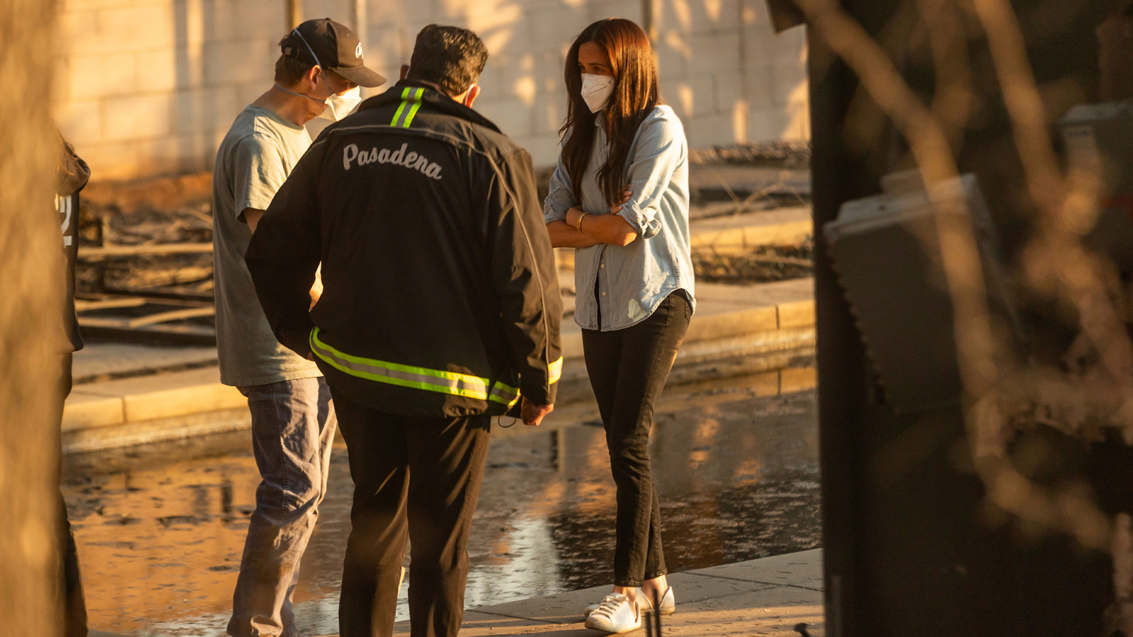 Footage published by FOX 11 captured the couple conversing with Andrés, as well as Pasadena Mayor Victor Gordo and other volunteers.