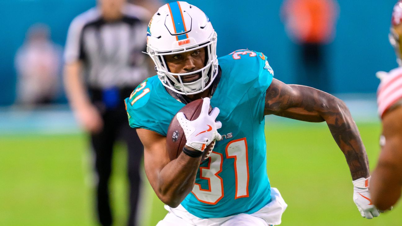 Between injuries and watching De'Von Achane become the Dolphins' featured running back, Mostert failed to build off an impressive 2023 campaign when he totaled a career-high 1,012 rushing yards and 18 touchdowns.