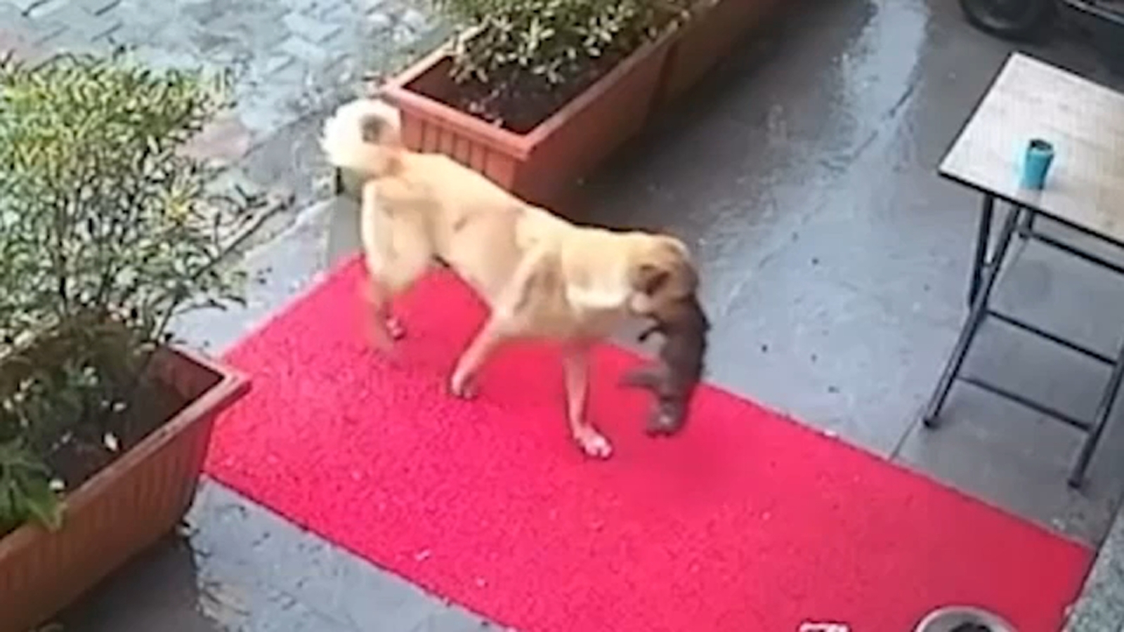 ISTANBUL -- Footage captures the moment a mother dog in Turkey helped save her unconscious, hypothermic puppy by carrying the pup to a veterinary clinic.