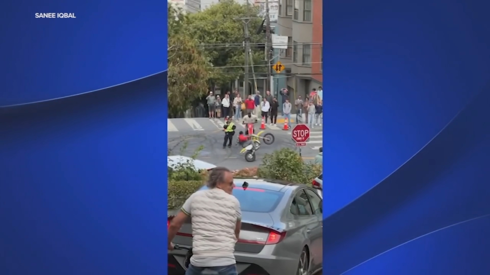 "The bikers are coming down the hill and just honking," said Iqbal. "Later, that's when I see the one, two three bikers starting to circle - doing wheelies and kind of burning rubber around the officer there."