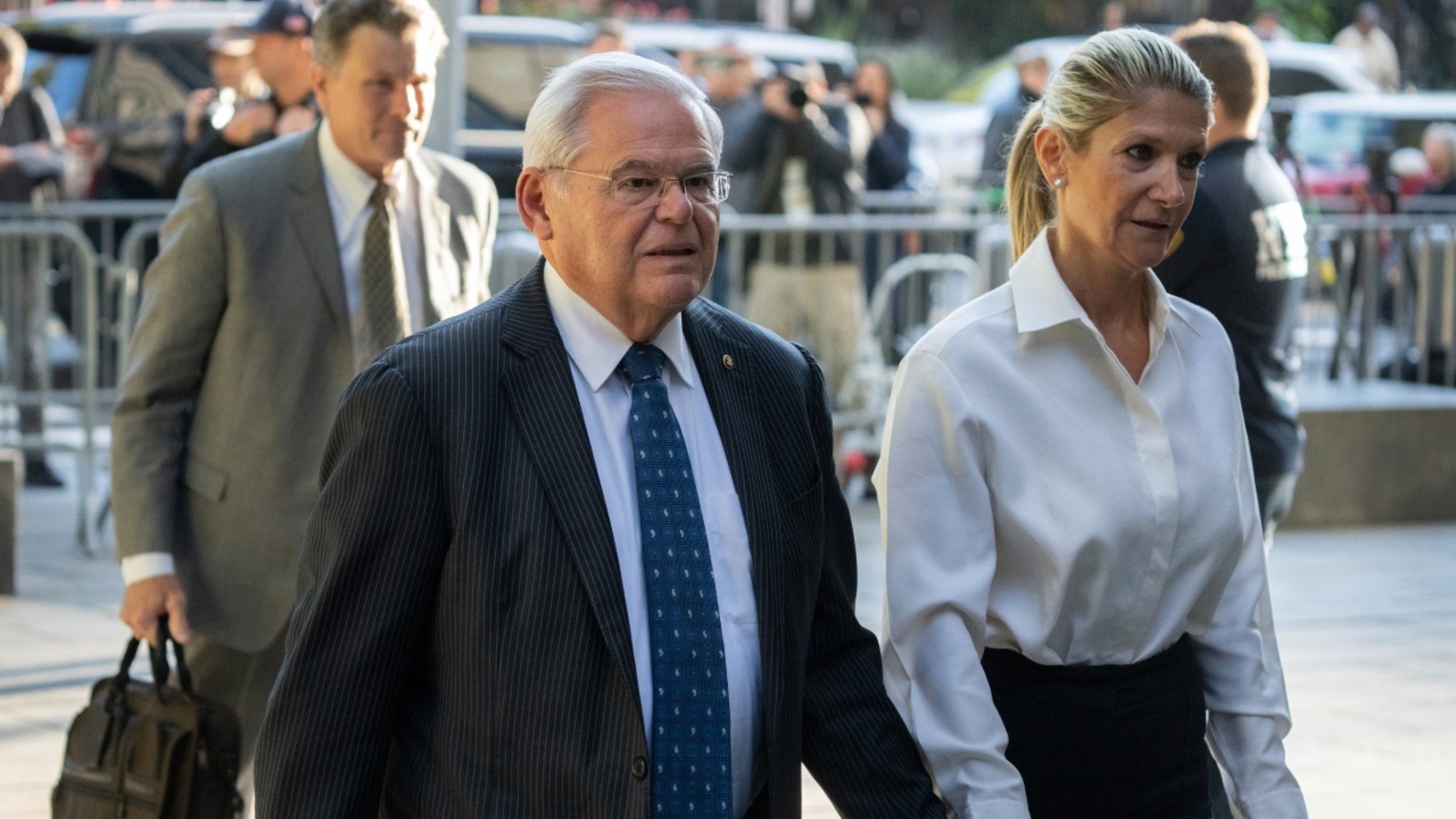 A lawyer for Menendez blamed the politician's wife Wednesday for his legal problems, telling a jury at the start of the trial that the Democrat wasn't aware his spouse had taken gifts from a trio of businessmen and didn't know about cash and gold bars hidden in a closet at their New Jersey home.