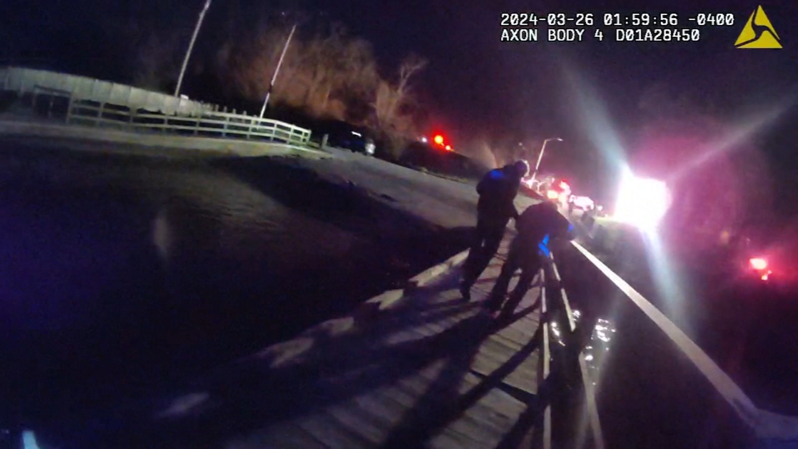 BALTIMORE -- Newly released body camera video shows the moment rescuers pulled a man to safety just moments after he survived the Francis Scott Key Bridge collapse in Baltimore.