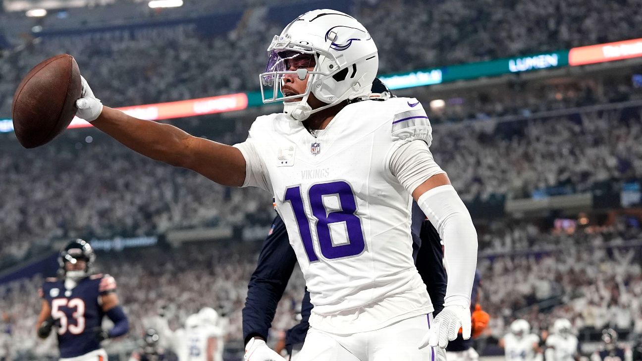 Eye-popping stat: According to NFL Next Gen stats, Justin Jefferson was more open on his first-quarter touchdown than he had been on any of the previous 20 touchdowns he has scored on throws into the end zone. Jefferson had 4 yards of separation from the nearest Bears defender on the 7-yard catch. -- Kevin Seifert