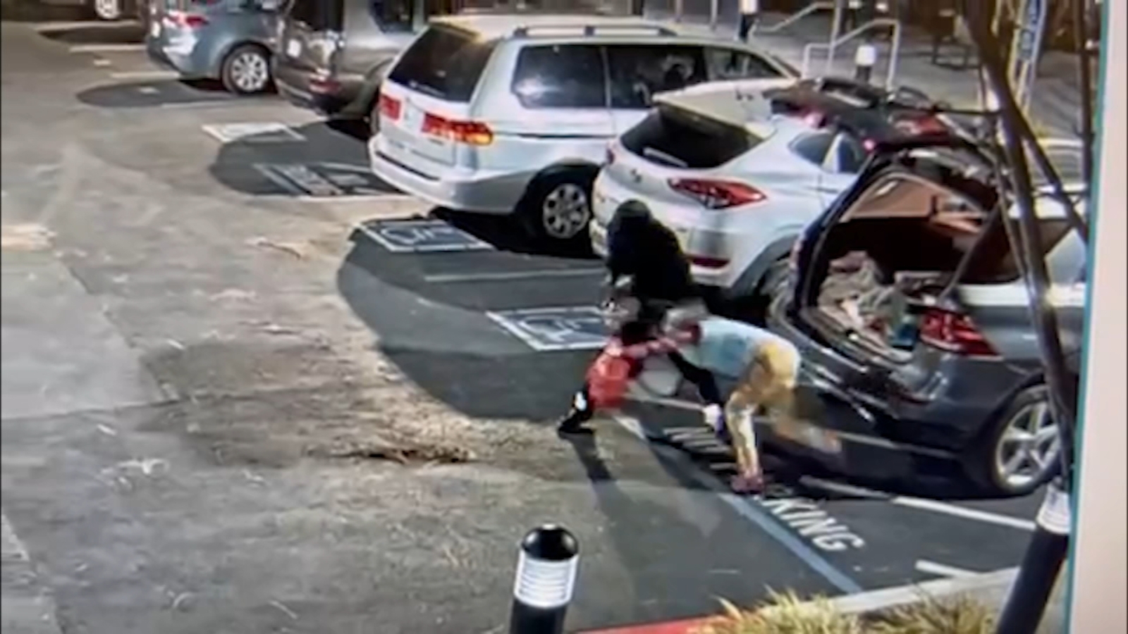 Surveillance video first broken on social media by ABC7 News anchor Dion Lim the night it happened, shows a man walk to Ms. Song's SUV. As she's unloading rice, the man grabs her purse.