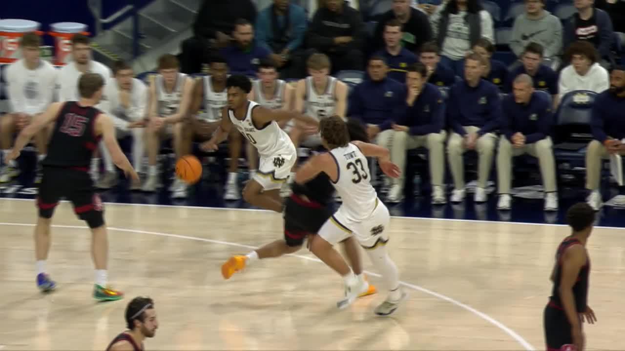 Jalen Haralson made 13 of 15 free throws and scored 19 points to lead Notre Dame (13-17, 4-13). Cole Certa added 17 points, Braeden Shrewsberry scored 14 and they combined for six of the Fighting Irish's nine 3-pointers.