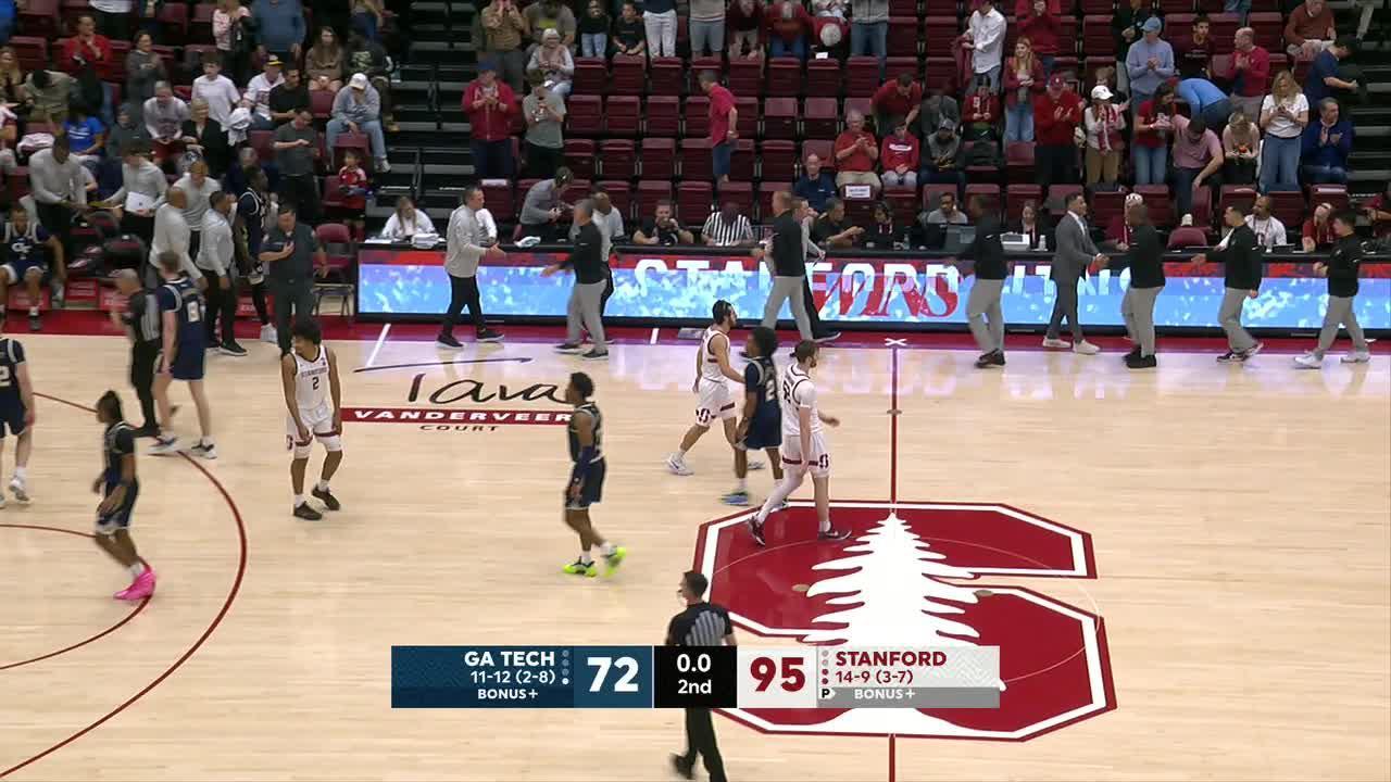 Georgia Tech closed the first half on a 12-5 run to pull to 43-39 at the break. The Yellow Jackets shot 52% overall in the first half but the Cardinal hit four more buckets from beyond the arc (7 of 16).