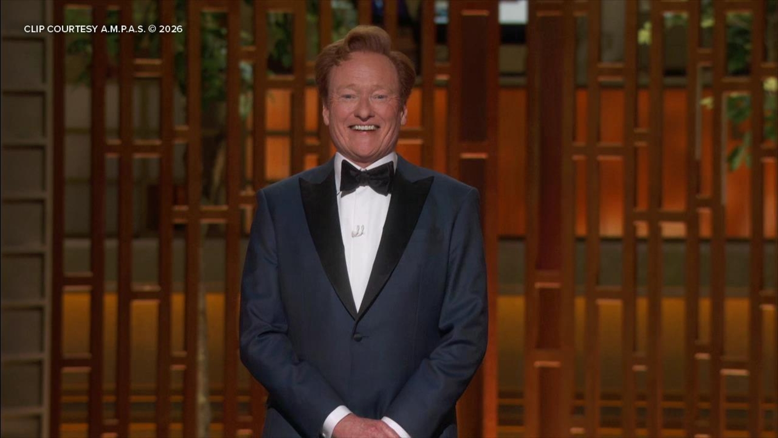 LOS ANGELES -- Oscars host Conan O'Brien kicked off the 98th Oscars by channeling Oscar-nominated actress Amy Madigan's performance in "Weapons," where she played the scary movie's villain "Aunt Gladys" while poking fun of many nominated actors and movies in a pre-recorded sketch. O'Brien then delivered a monologue that touched on this year's nominated movies and actors.