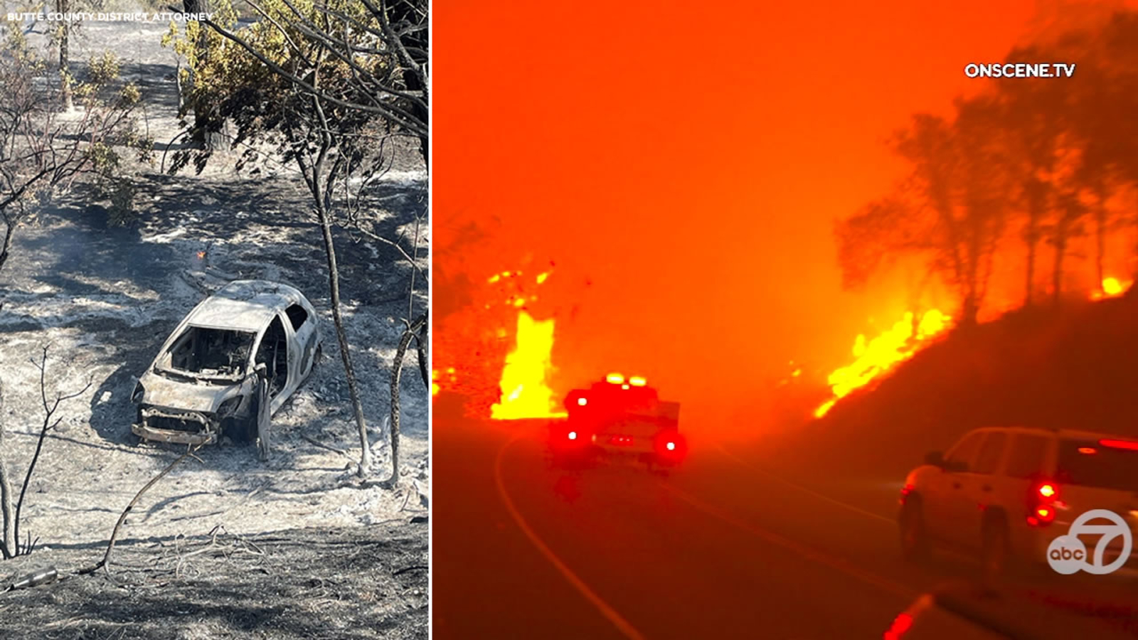 The Butte County District Attorney says that the suspect is believed to have pushed a burning car into a gully on Wednesday afternoon. Officials say the car went 60 feet down the embankment and the flames spread to cause the Park Fire. An image released from the DA shows the car completely burned.