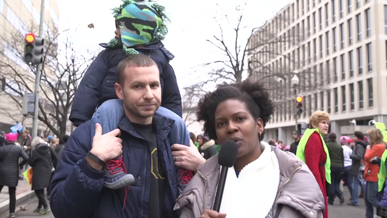 Stephany Perez-Cohen, who lives in D.C., brought her son to set an example, she said. She wanted him to see that you should speak up when you disagree with someone's politics.