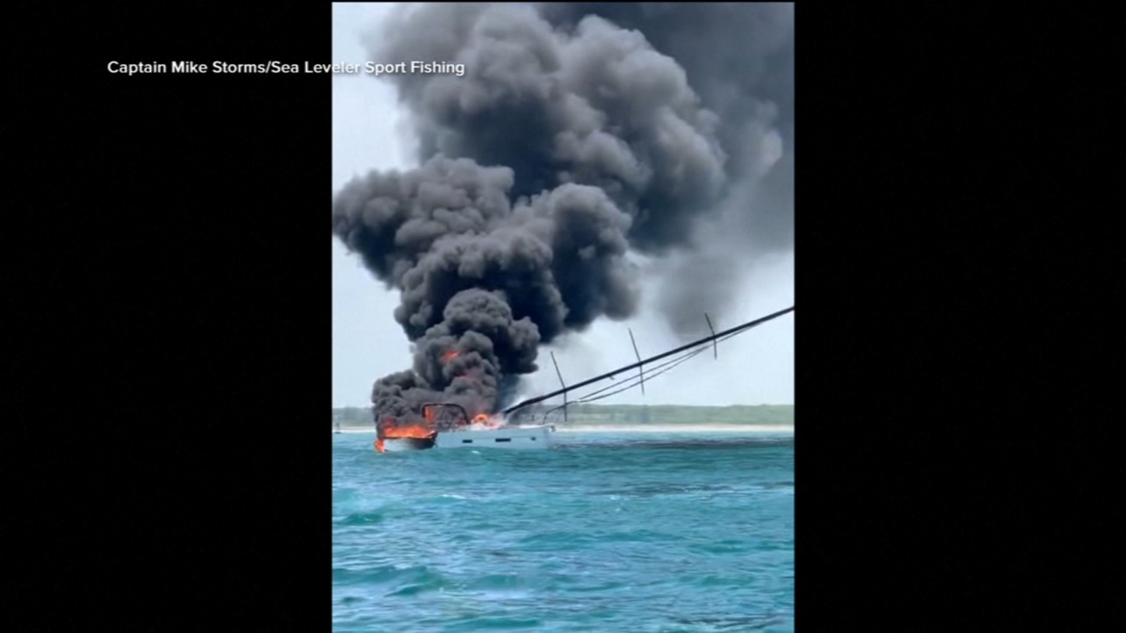Four people were rescued from a burning boat Saturday off the coast of Cape Canaveral, Florida.