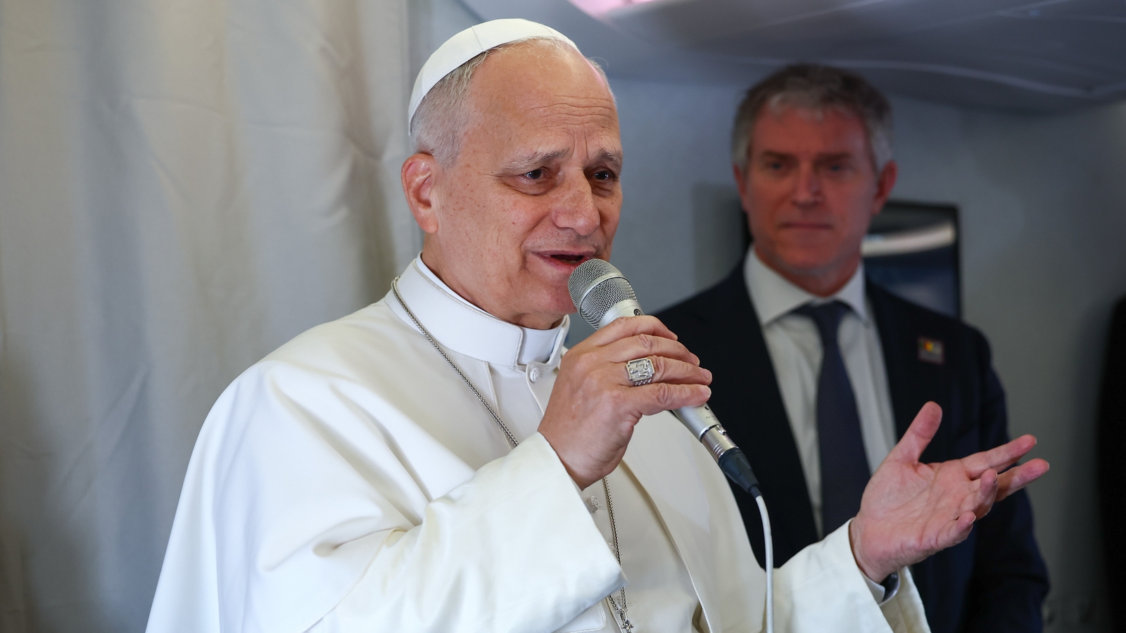 Leo spoke to journalists en route to Cameroon as he continued his Africa visit.