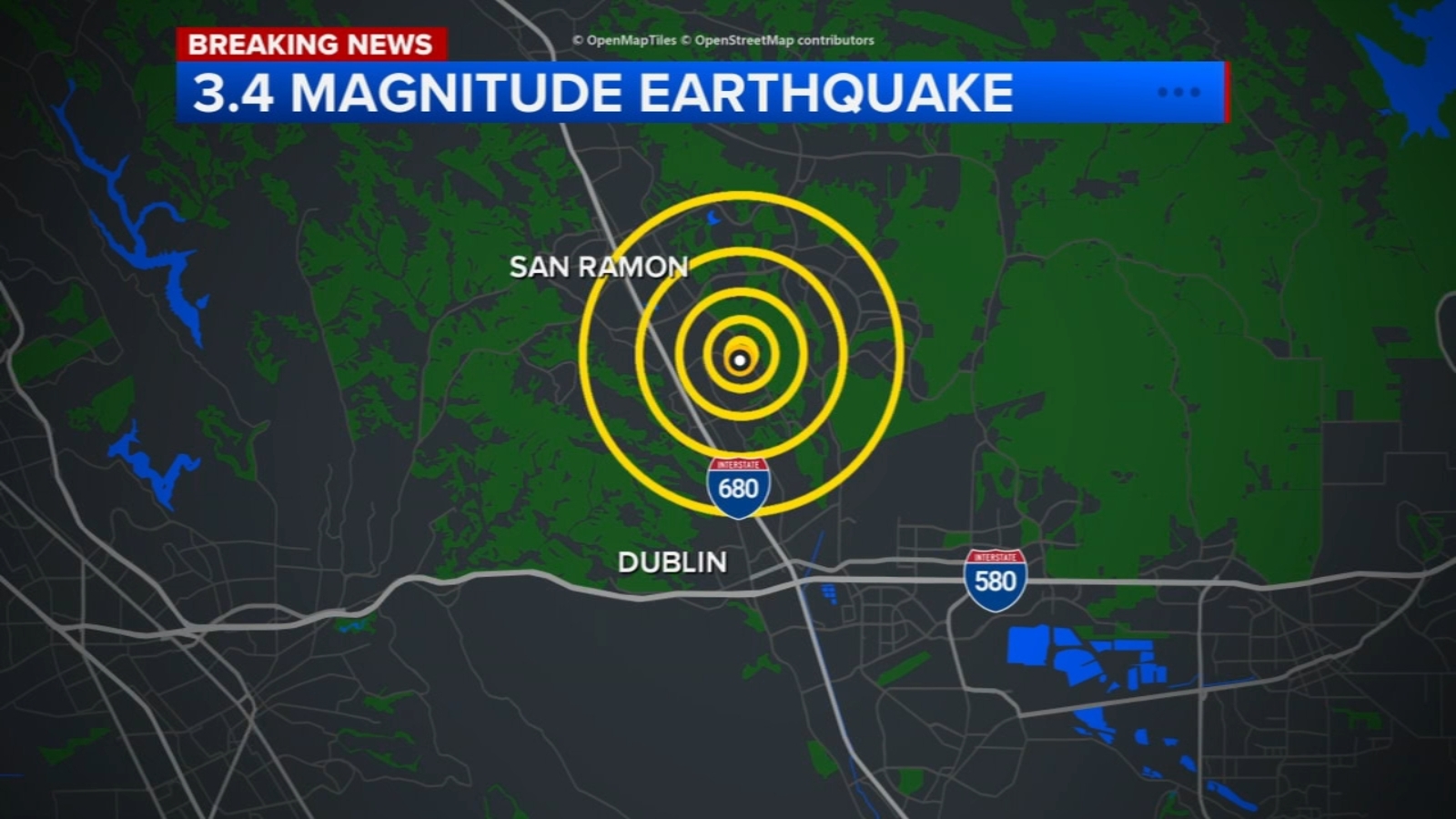 SAN RAMON, Calif. (KGO) -- An earthquake with a preliminary magnitude of 3.4 struck near San Ramon at 10:33 a.m. Friday, the U.S. Geological Survey said.