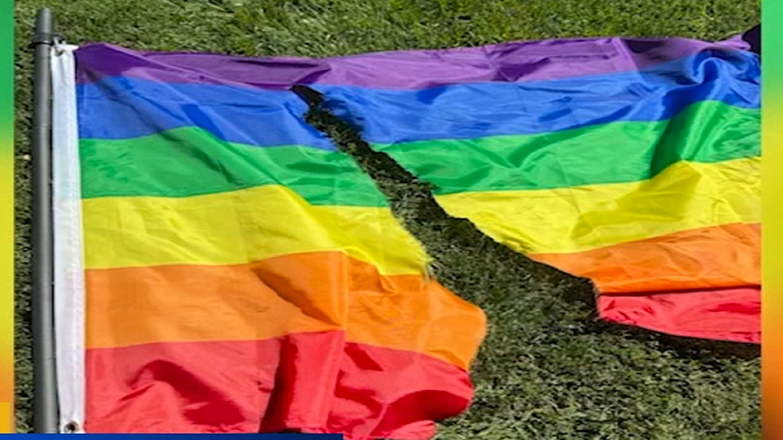 ANAHEIM, Calif. -- A neighborhood in Anaheim, California was left stunned after an LGBTQ Pride flag was slashed and torn down from in front of one couple's home.