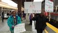 Several dozen demonstrators marched and sang starting at 5 a.m.