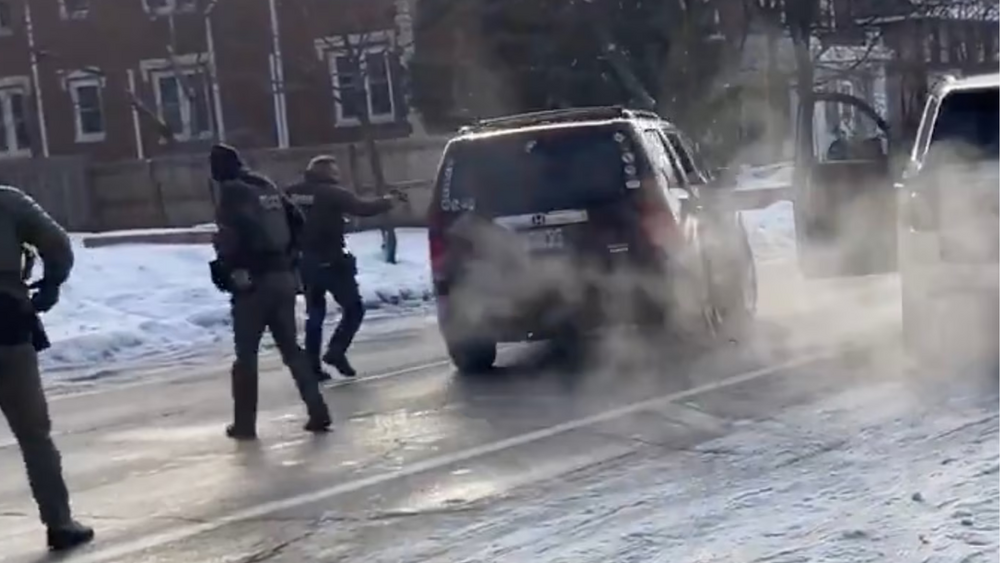 It is not clear from the videos if the vehicle makes contact with the officer, and there is no indication of whether the woman had interactions with agents earlier. After the shooting, the SUV speeds into two cars parked on a curb before crashing to a stop.