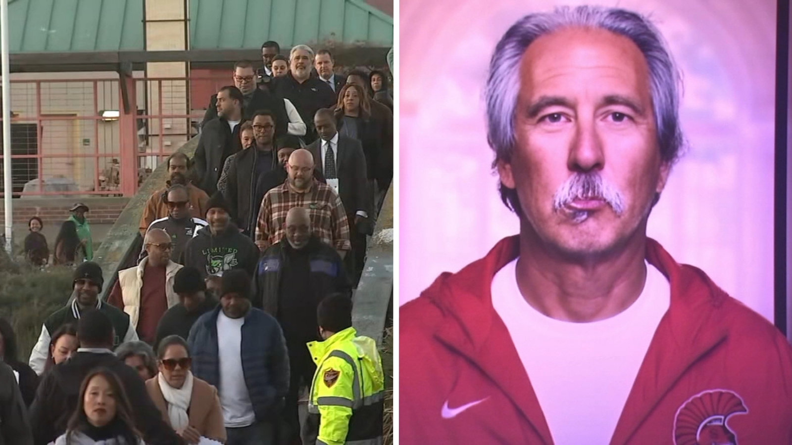 Coach Beam's family and students gathered for a "light the path, light the field" walk honoring his legacy. They walked the same route he used to take every day from Laney College Bistro to the Eagles Football Stadium.