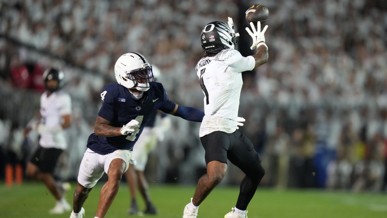 Oregon thumped its first four opponents, curbing Moore's usage, but it's clear after the upset road win over Penn State that the Ducks can rely on the No. 1 receiver in the Class of 2025 as a top target. The 5-foot-11, 195-pound Moore led Oregon in receptions (7) and yards (89) in Saturday night's OT win and leads Oregon in receiving through five games. He has also fared quite well as a run blocker, helping alleviate some concern about the Ducks' receiver depth. Don't be surprised if this is just the beginning of his ascension this season, even as the Ducks' Big Ten schedule gets tougher.