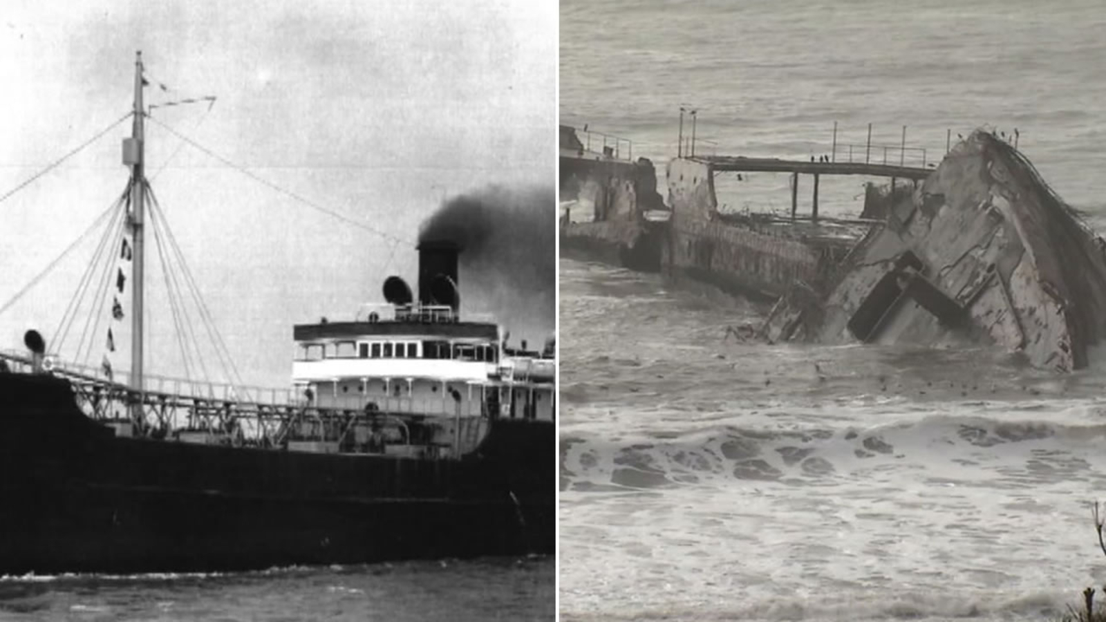 During storms last year, it began to break apart and started to lean. But now a third of the ship is on its side because of the brute force of the surf.