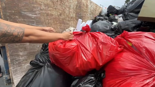 "Here is my bin. Man, this is full! Man, this is filled to the gill. It's really messed up," said Reyes. "Two doors down we had a neighbor whose garbage that was packed to the rim all the way at the top."