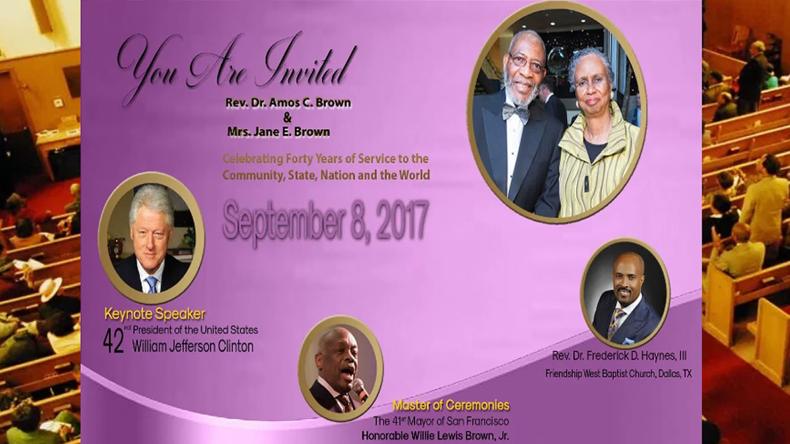 SAN FRANCISCO (KGO) -- A special event is being held at Third Baptist Church in San Francisco on Friday, Sept. 8 to celebrate Reverend Amos Brown's 40 years of community service in the Bay Area and beyond.