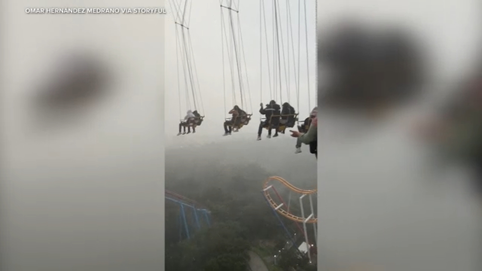 A group of riders at Six Flags Mexico experienced some terrifying moments after they became stuck nearly 250 feet above the ground during a storm.