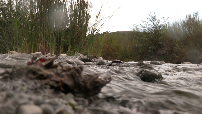 "We have got some exciting news," Buchanan says. "From our biologists that are on site monitoring Arsenal Valley fish passage project. The biologists work for Sequoia Ecological Consulting, and they spotted two Chinook salmon who had migrated past the erosion control matt that was formerly there, blocking fish migration on Alameda Creek."