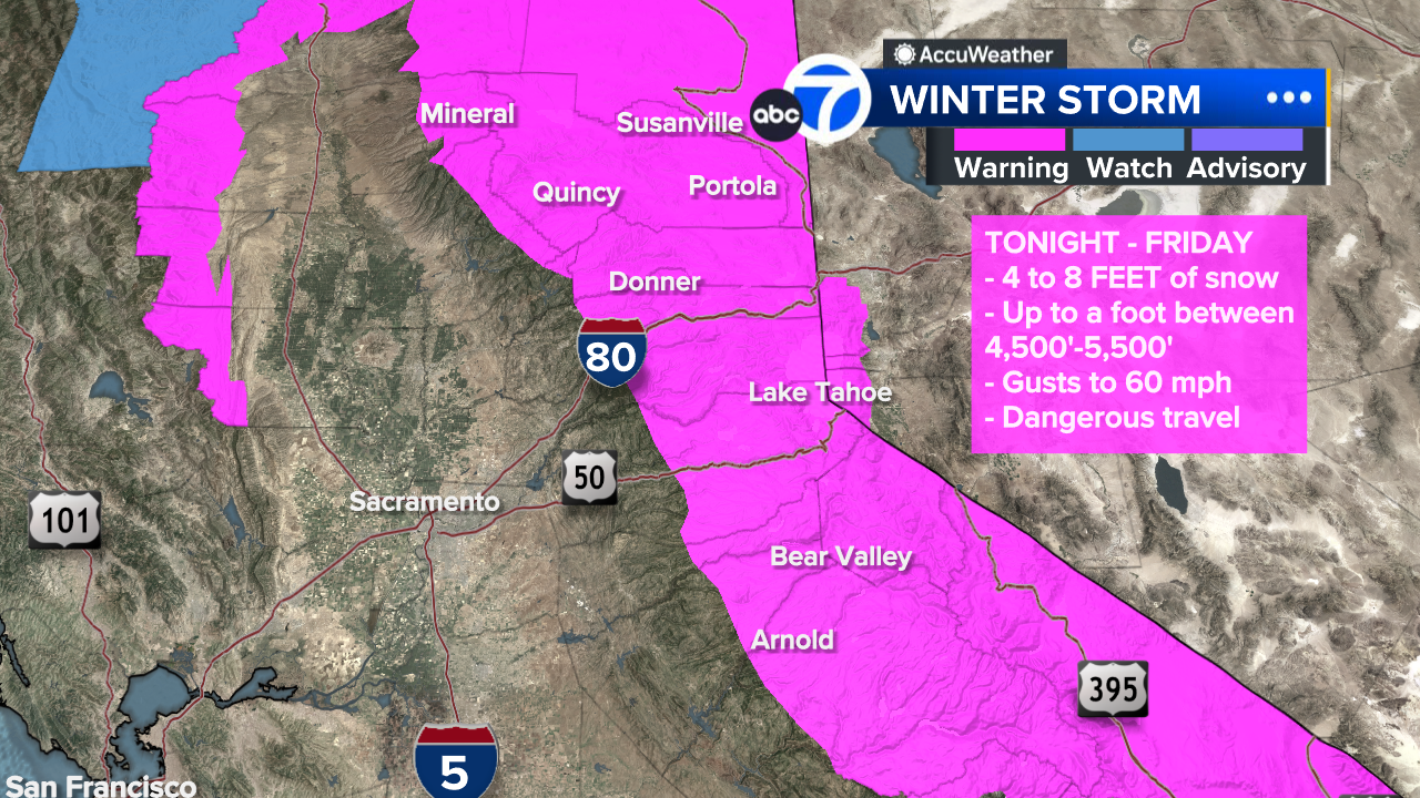 There's an estimated up to eight feet of new snow coming to the Tahoe resorts.