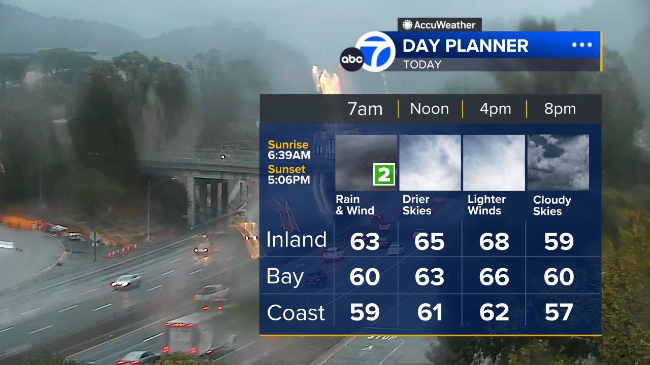 SAN FRANCISCO (KGO) -- An atmospheric river hit the Bay Area Wednesday morning, bringing heavy rain and especially strong winds.