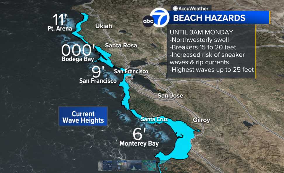 A Beach Hazard statement will be in effect along the coast the entire weekend for rough and dangerous surf. Light snow is expected in the Sierra -- above 6,500 ft could feature half a foot.