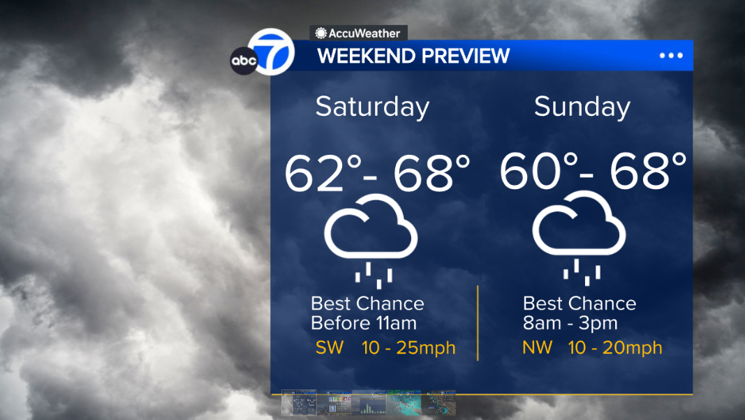 Rain is back on Saturday with a Level 1 on our ABC7 Exclusive Storm Impact Scale. The best chance for rain will be before 11 a.m. Saturday.