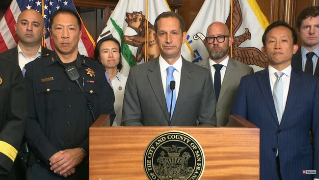 San Francisco law enforcement officials and multiple supervisors stood around Lurie as he gave his speech.