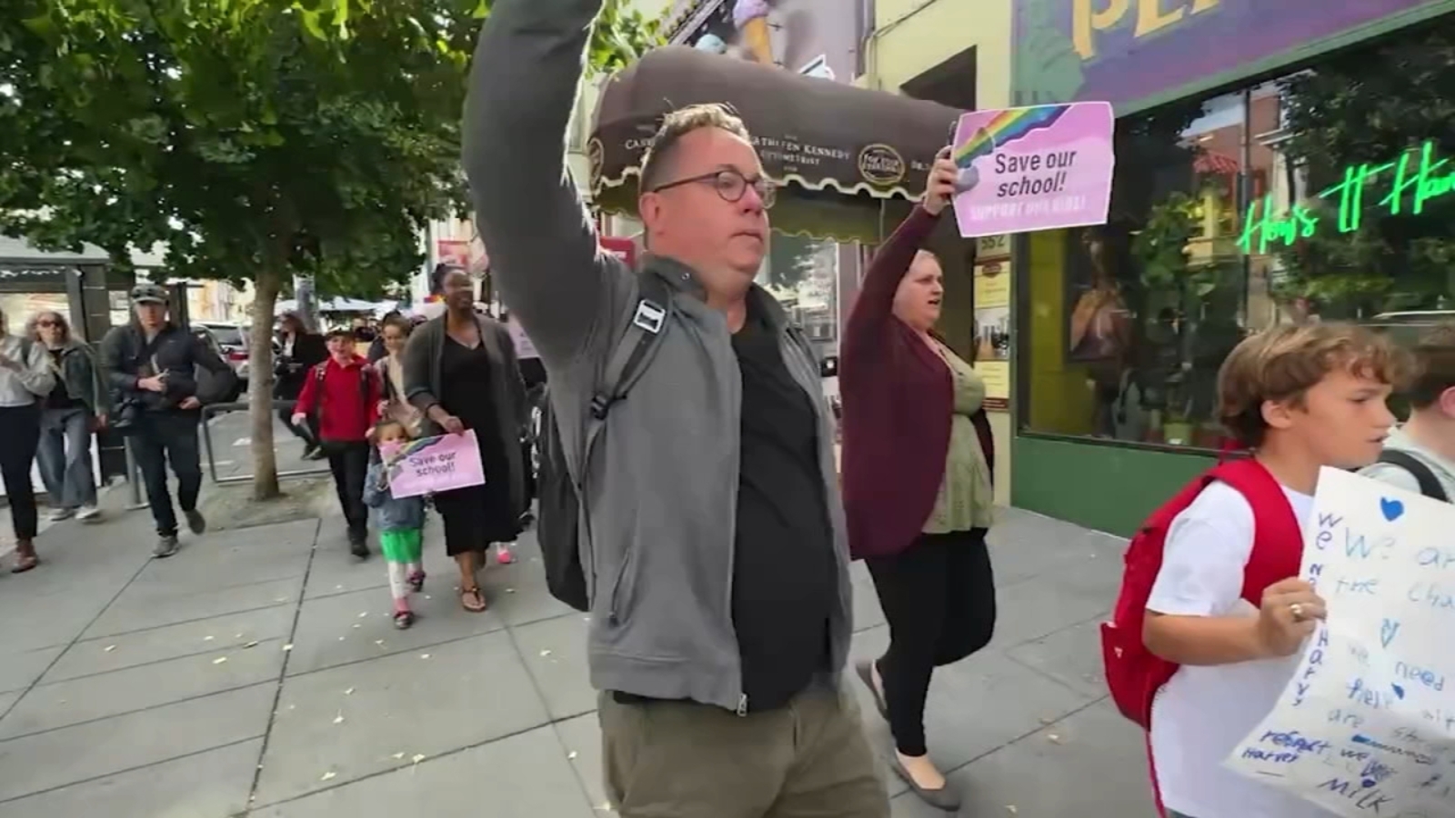 "Save our school. Save our school," chanted a group of students as they marched around the Castro District.