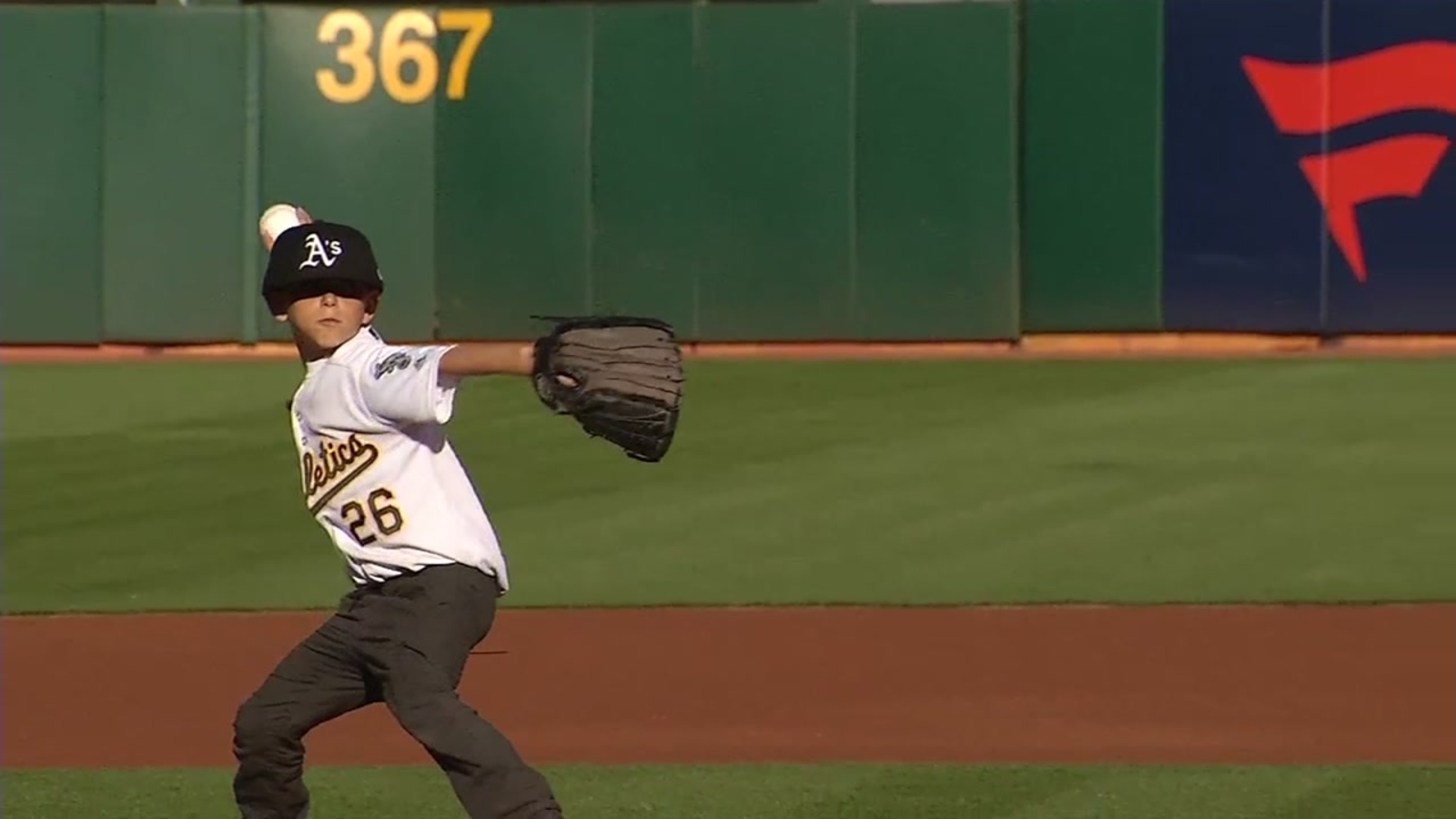 "It's great to see his personalized jersey. The big smile on his face. We have an amazing A's fan here to throw out the first pitch. It's an incredible night," said Dave Kaval, Oakland Athletics' President.