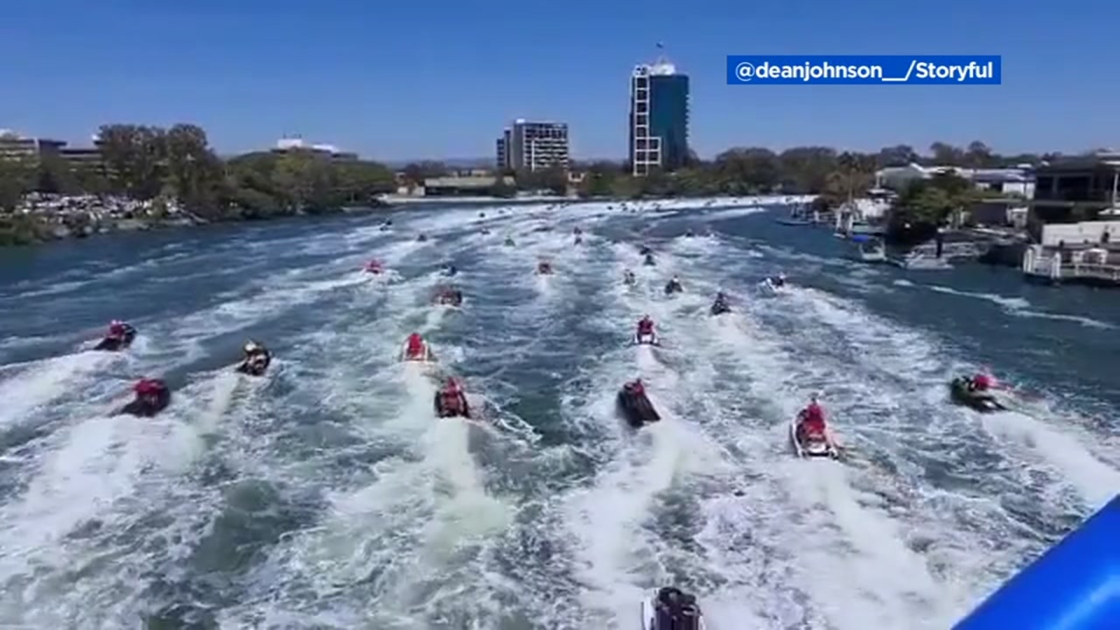 AUSTRALIA (KGO) -- In Australia, hoards of "Santas" traded in their sleighs for jet skis, all for a great cause.