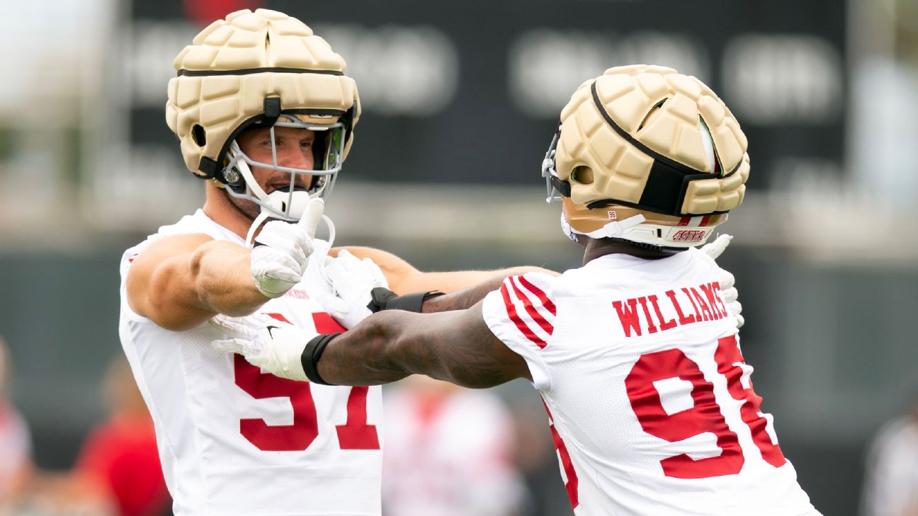 It's a lot of moving parts for a top-heavy team that still boasts some of the best players in the league at their positions in Bosa, Warner, Kittle,Trent Williamsand running back Christian McCaffrey, along with burgeoning stars such as quarterback Brock Purdy and Lenoir. Built into that setup is the fact that each of those players occupies a different meeting room, providing a sounding board beyond the position coaches for the younger players.