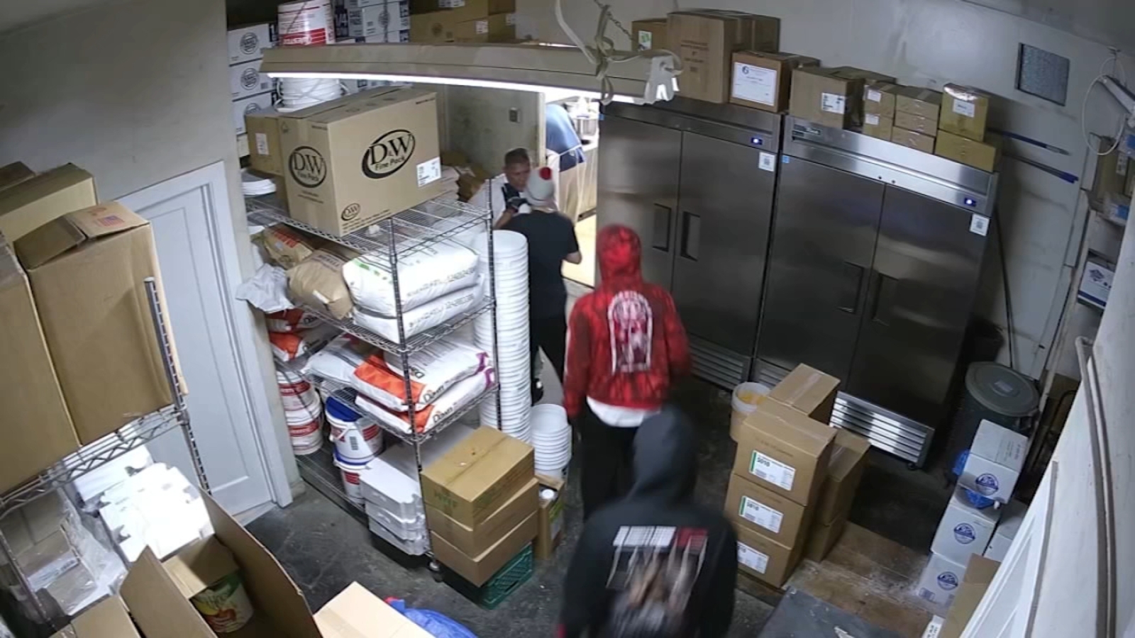 Surveillance footage showed the group roaming through the bakery as they demanded money and a safe.