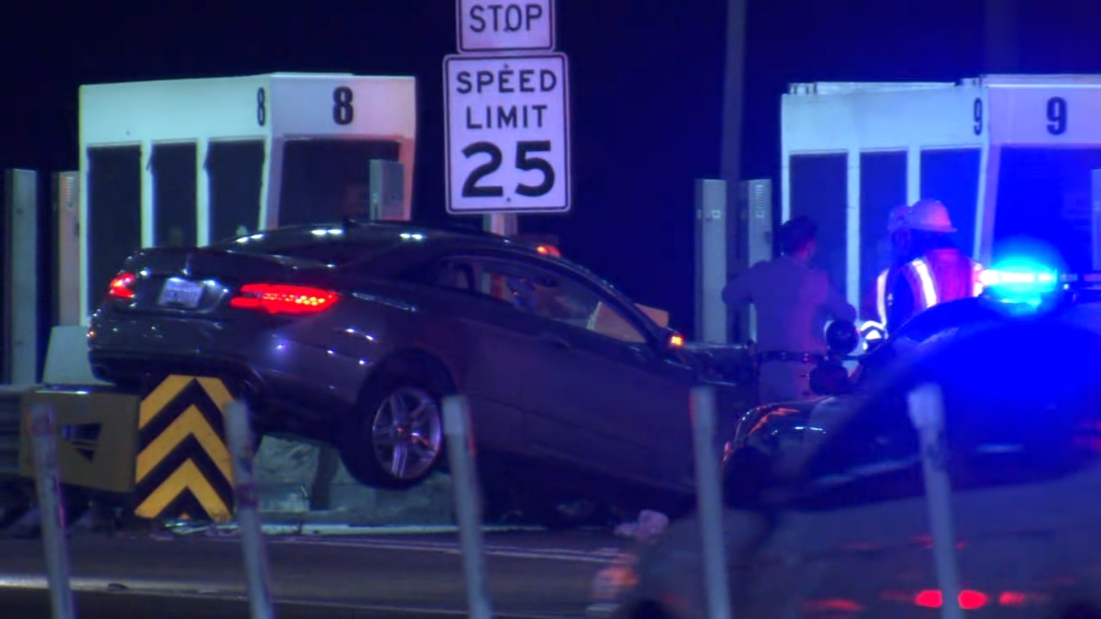 It happened around 4 a.m. and video shows a car wedged in between two of the toll plaza booths.
