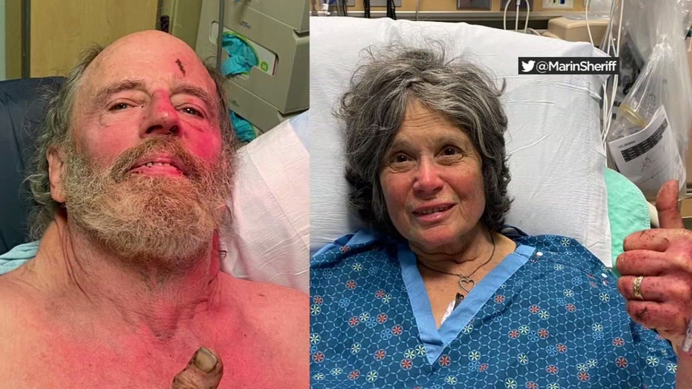The Marin County Sheriff's Office tweeted a photo of the couple recovering at Marin Health. Both of them could be seen with scrapes and bruises, but holding thumbs up and appearing in good spirits.