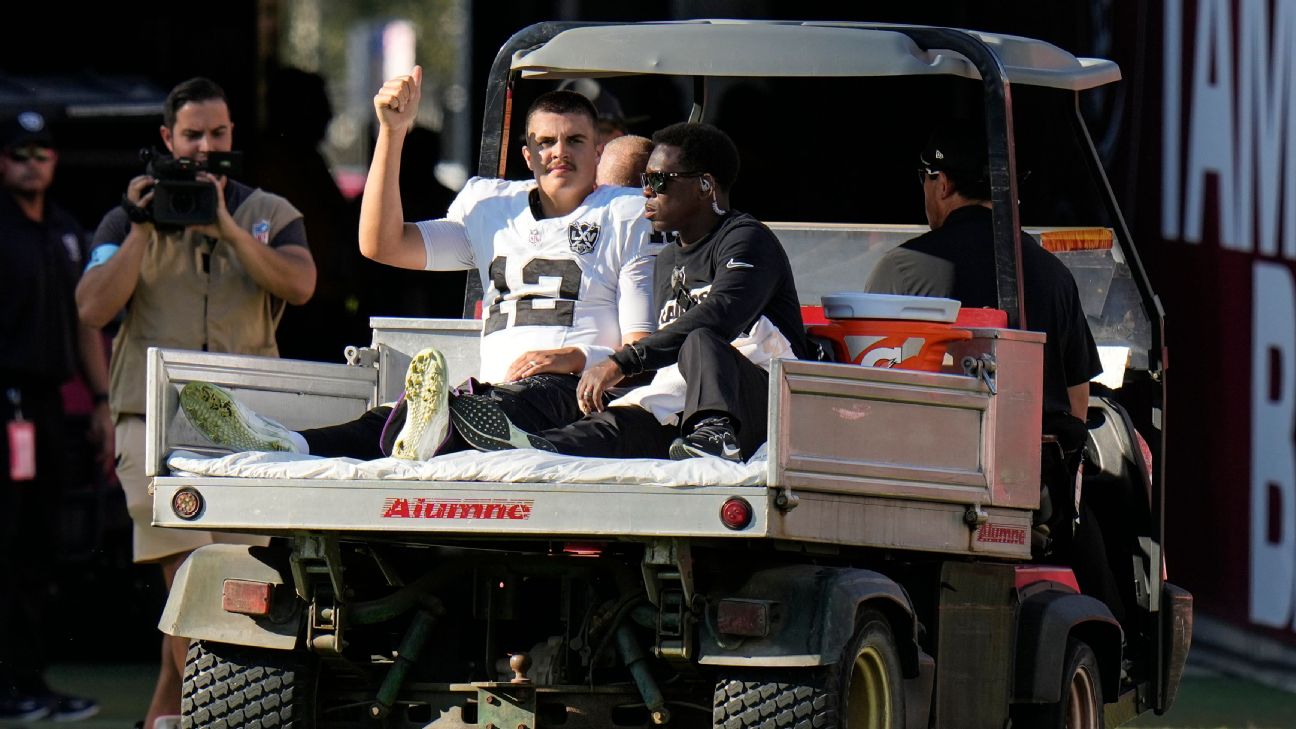 O'Connell was injured late in the third quarter of the Raiders' 28-13 loss to the Tampa Bay Buccaneers. He was scrambling toward the sideline and, after throwing a pass, was pushed from behind by Buccaneers defensive tackle Calijah Kancey and landed awkwardly. O'Connell was carted off the field with his injured leg in an air cast. Pierce said following the game that, after watching a replay, he thought the hit was late. No flag was thrown.
