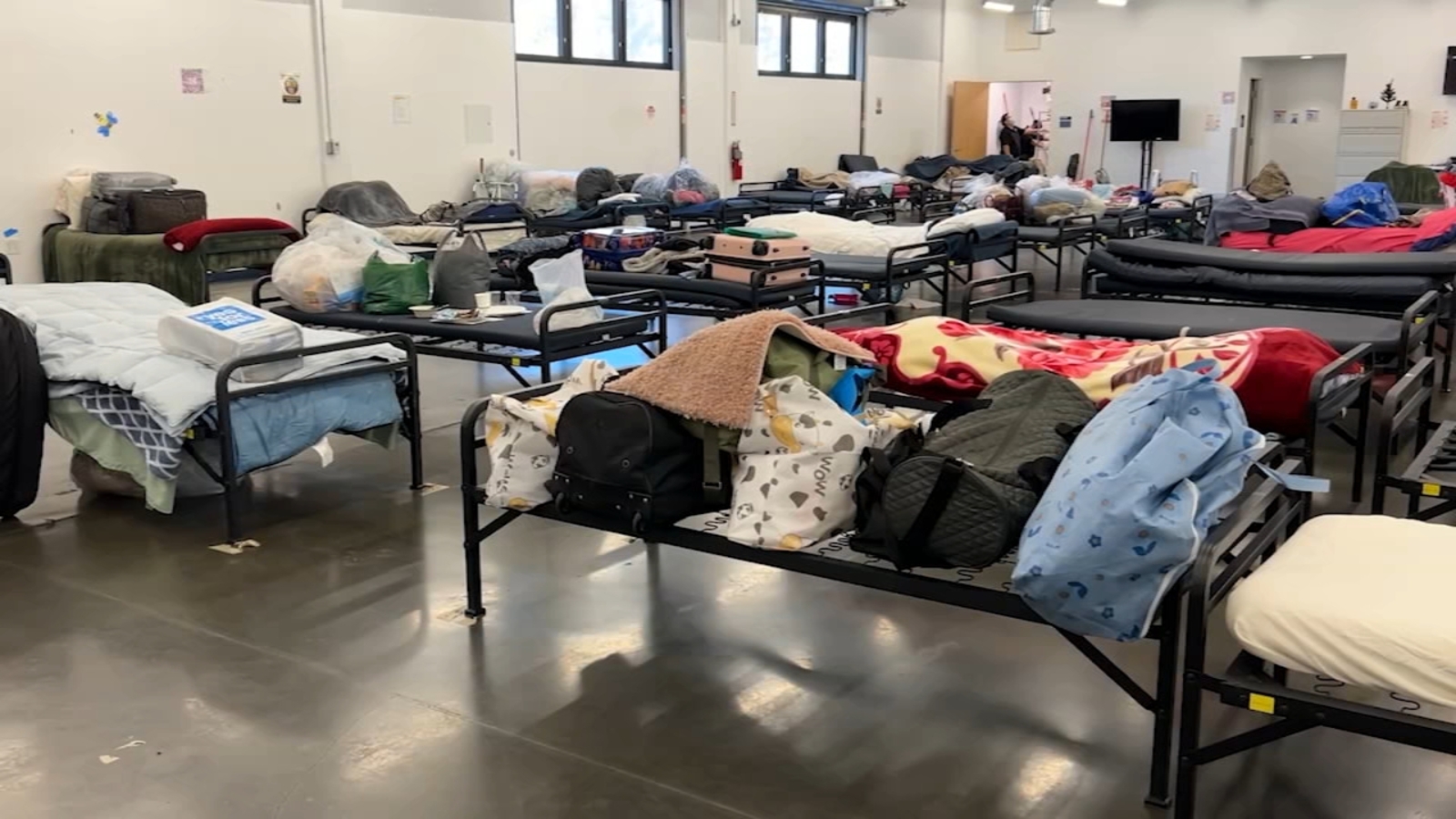 Inside the North County Shelter in Sunnyvale, more than 100 beds are set up for people experiencing homelessness.