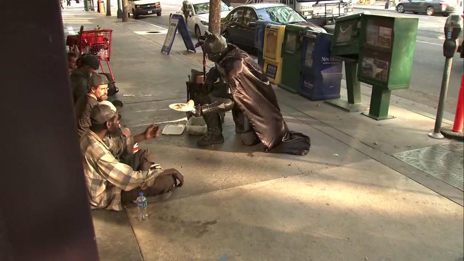 SAN JOSE, Calif. (KGO) -- A teen in San Jose is turning heads. His impressive Batman costume comes second to the services and sustenance he's providing for the city's growing homeless population.