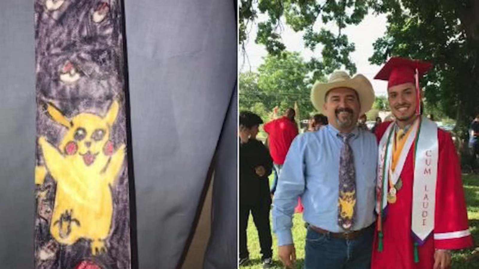 When Dylan was in the first grade, he gave his father a handmade Pokémon tie. 11 years later, his father wore the tie to Dylan's high school graduation.