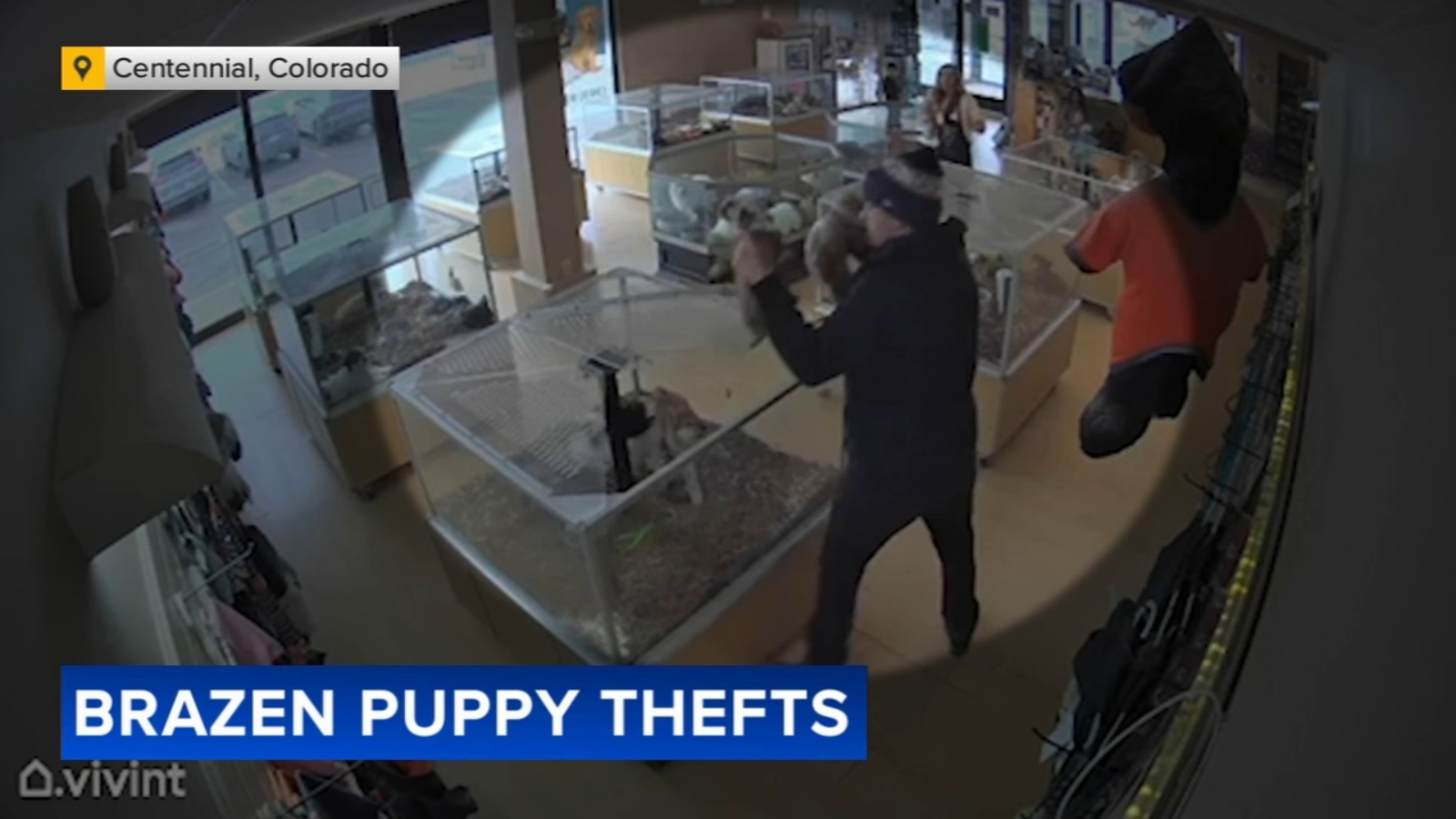 CENTENNIAL, Colorado -- A pet store in Colorado is dealing with a bizarre rash of crime. Surveillance video has captured brazen thieves repeatedly stealing puppies from the store.